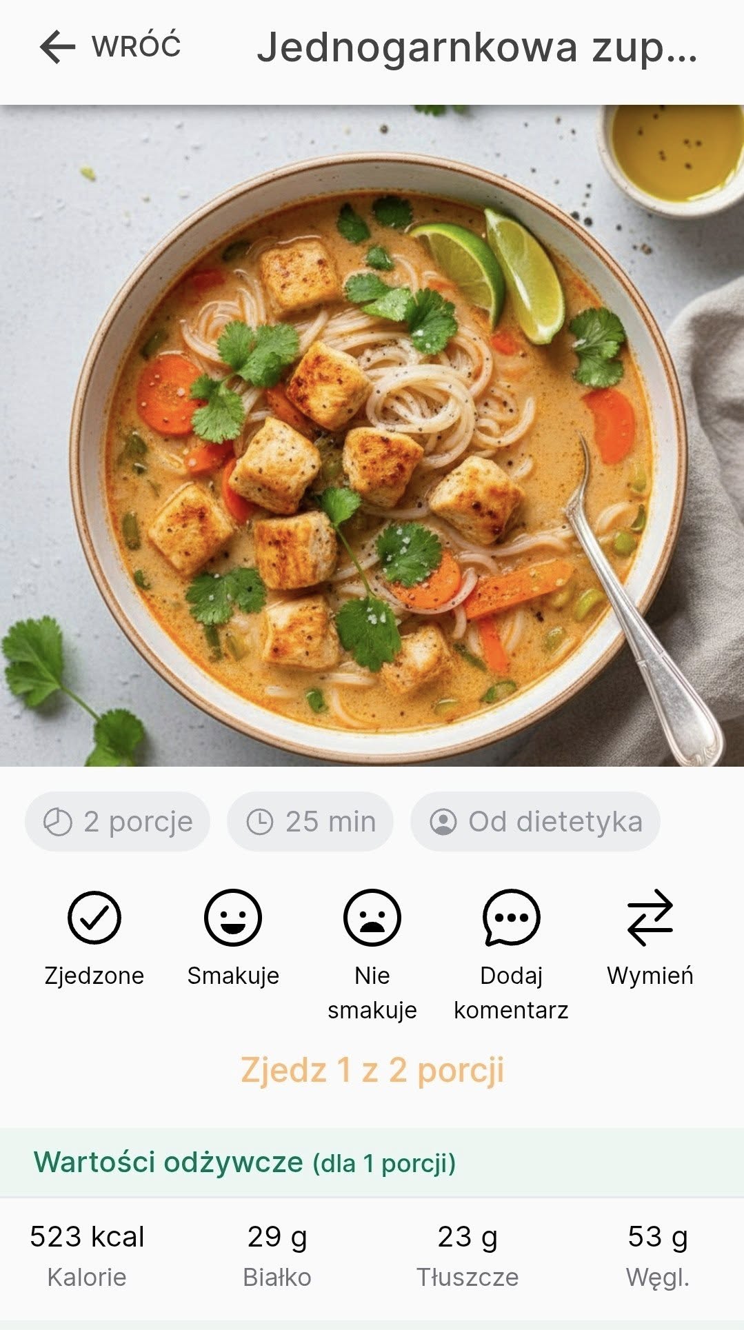 ✔️ Jadłospis zawsze dostępny w aplikacji – masz go pod ręką w każdej chwili.