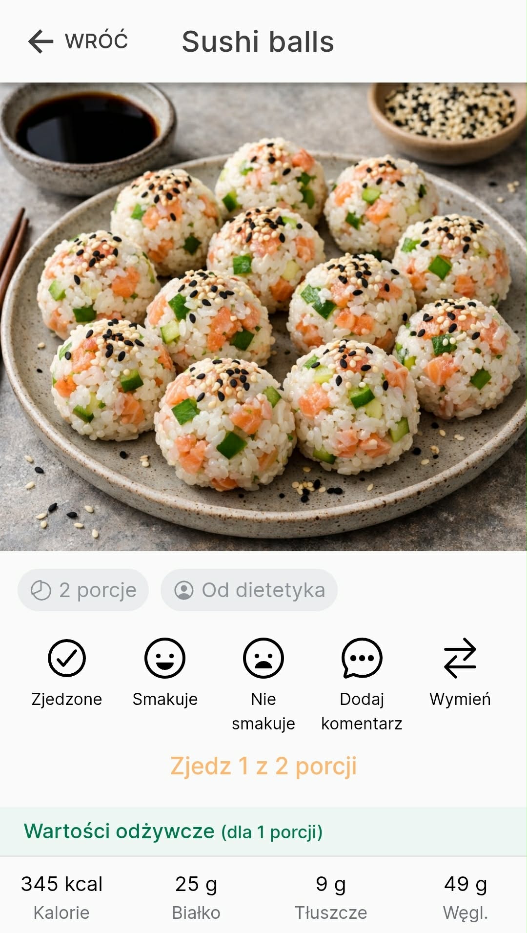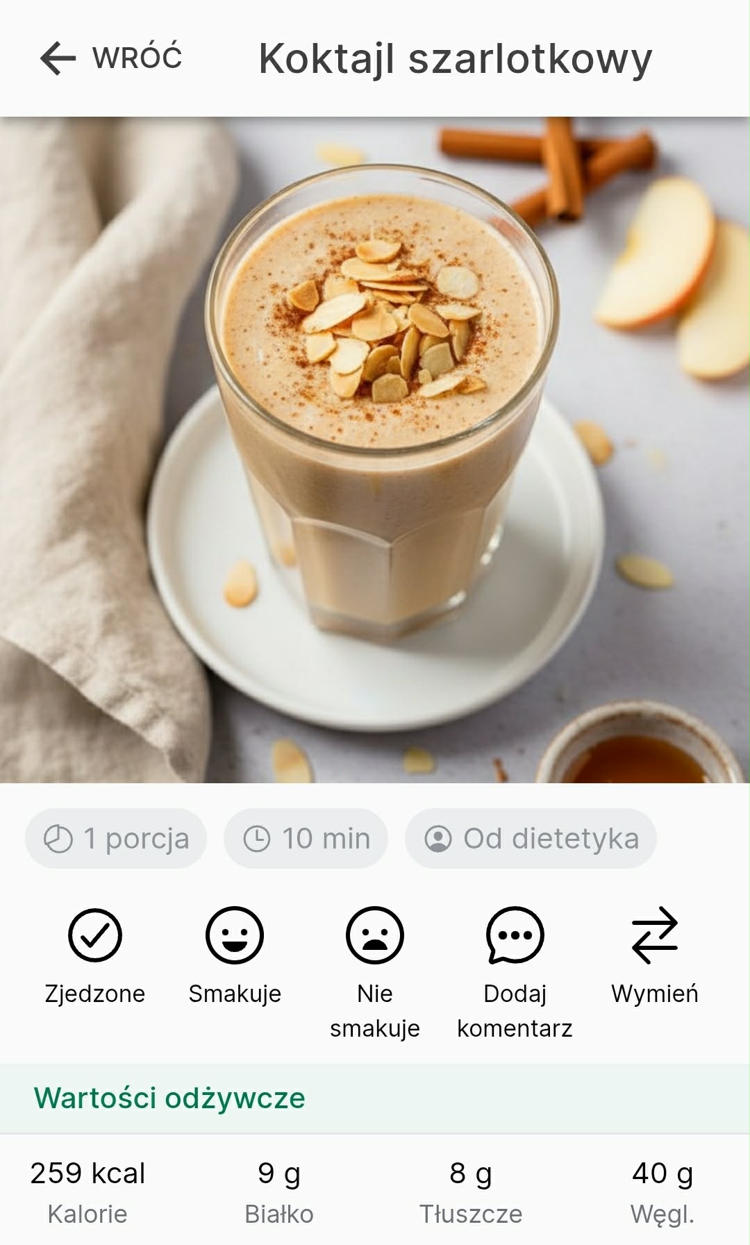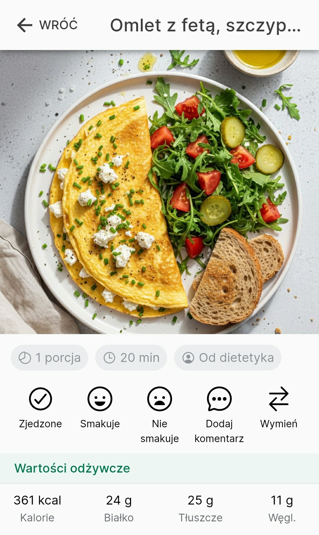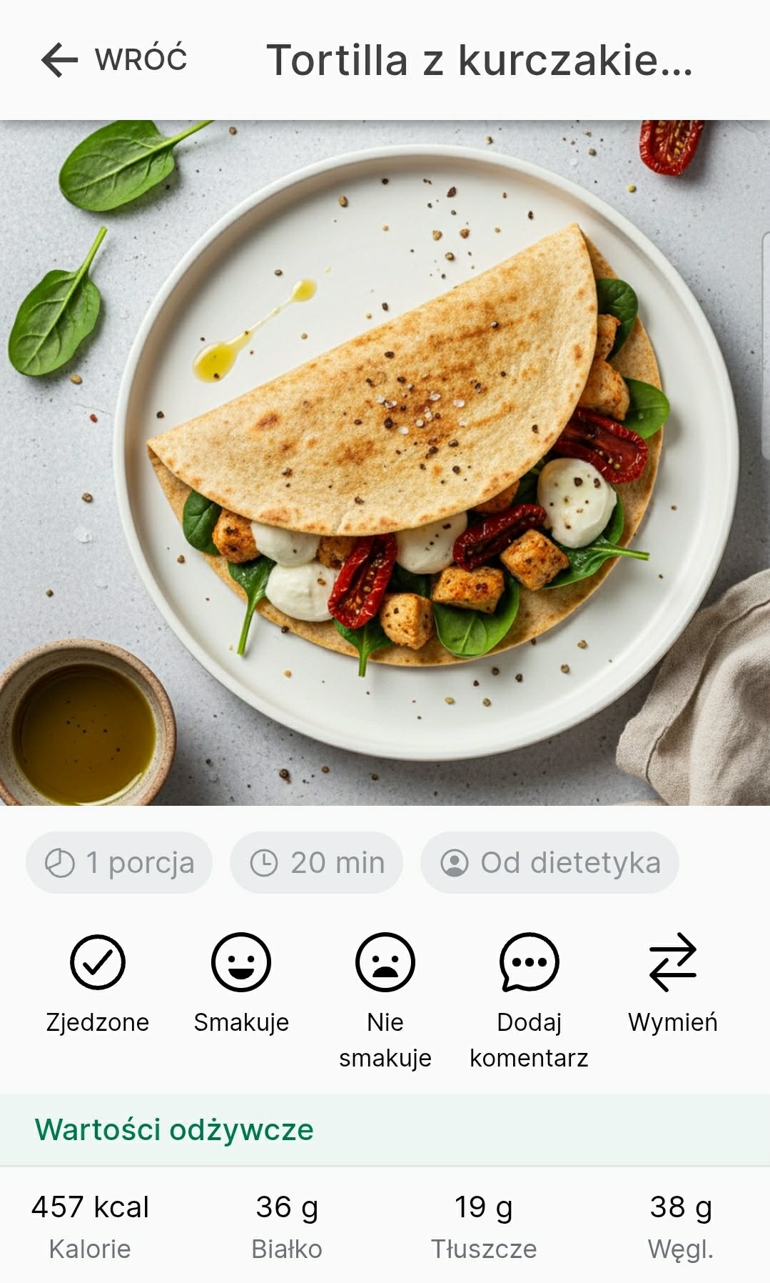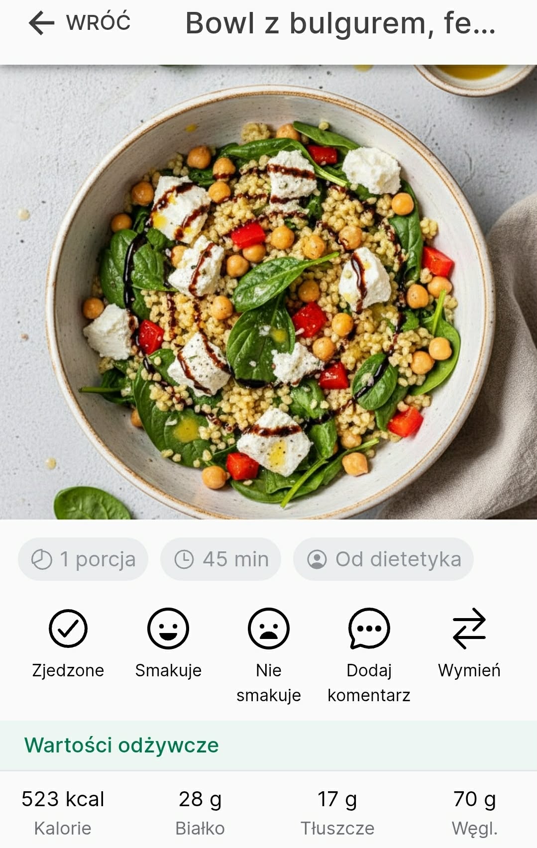 ✔️ Dowolna wymiana posiłków – pełna kontrola nad planem żywieniowym.