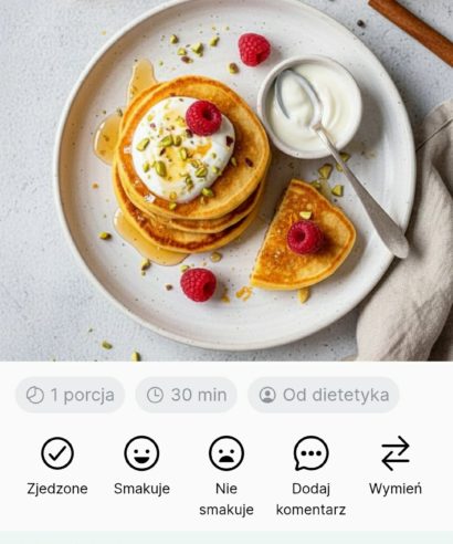 Przeglądasz przepisy, oglądasz zdjęcia dań, układasz jadłospisy, oznaczasz zjedzone potrawy, zapisujesz swoje pomiary i w ramach potrzeby możesz konsultować się z dietetykiem w aplikacji.