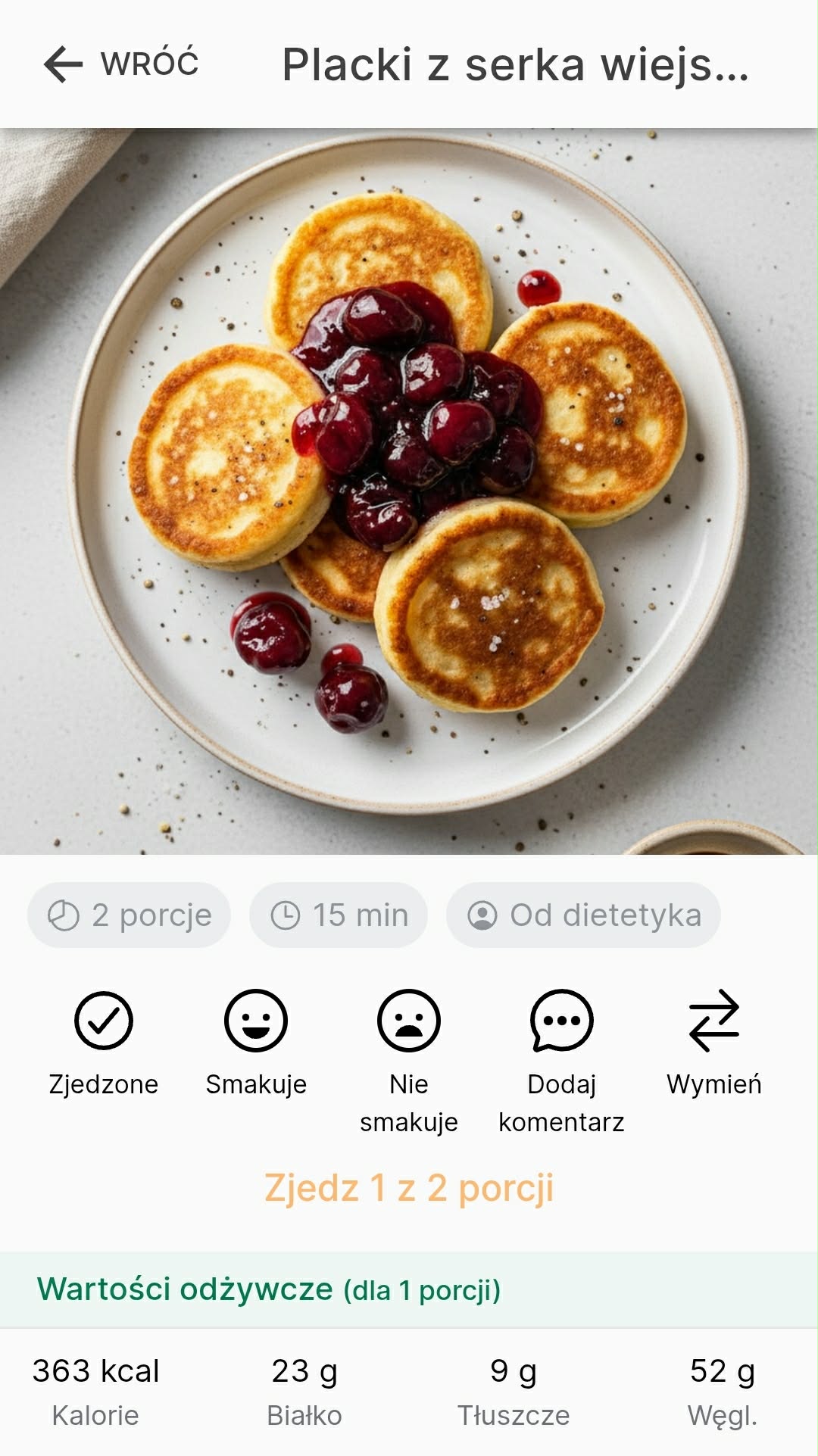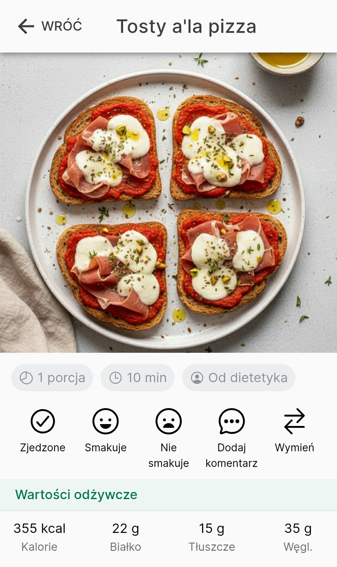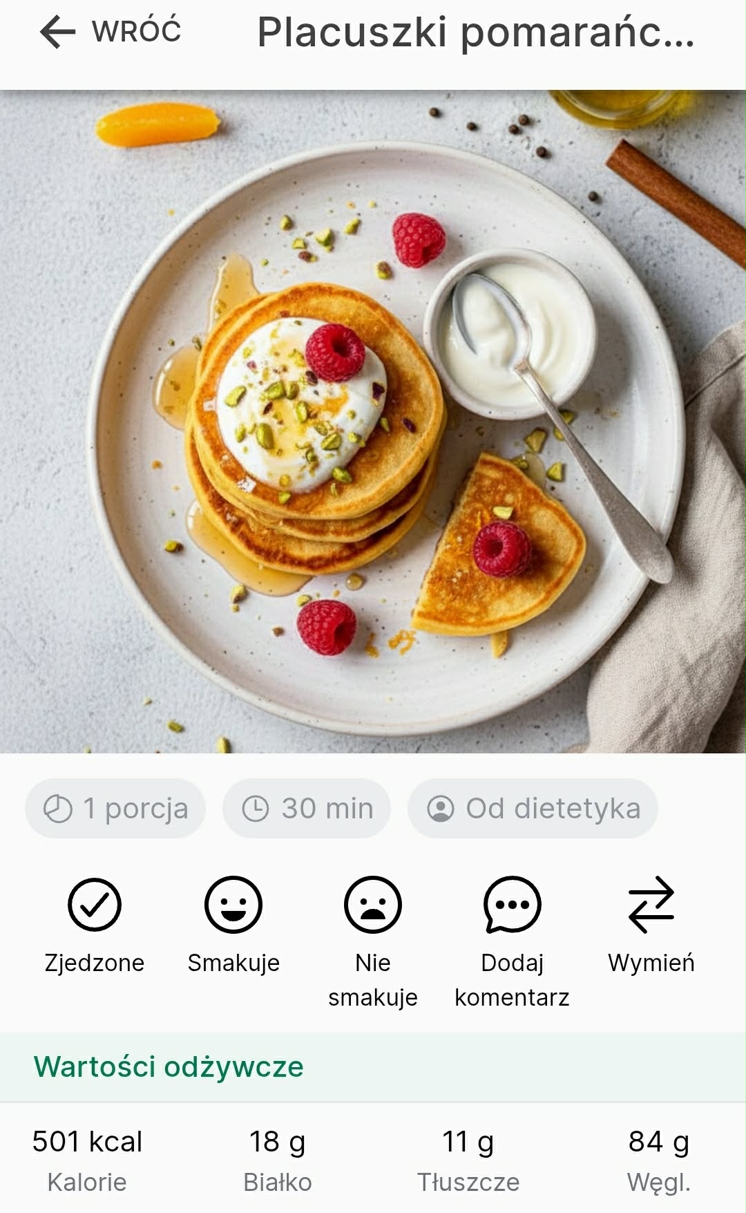 ✔️ Jadłospis zawsze dostępny w aplikacji – masz go pod ręką w każdej chwili.
